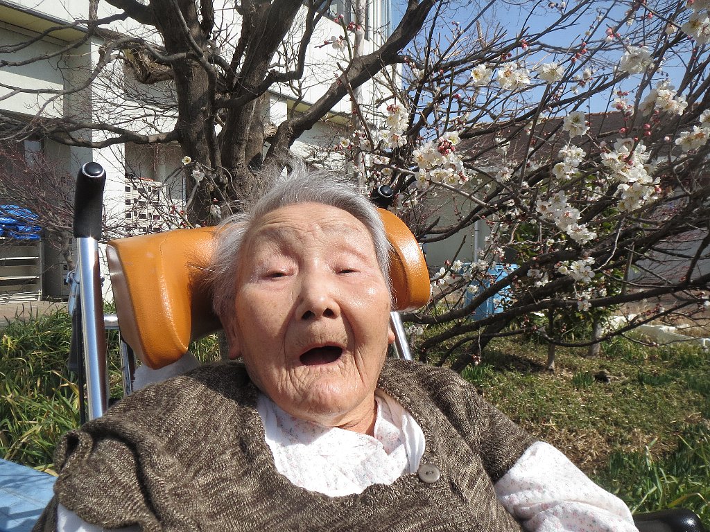 園の中庭にてお花見をしました。(白砂恵慈園H30.03.13)