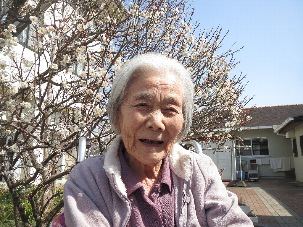 日差しを浴びながら、園の中庭にて梅花を楽しみました。